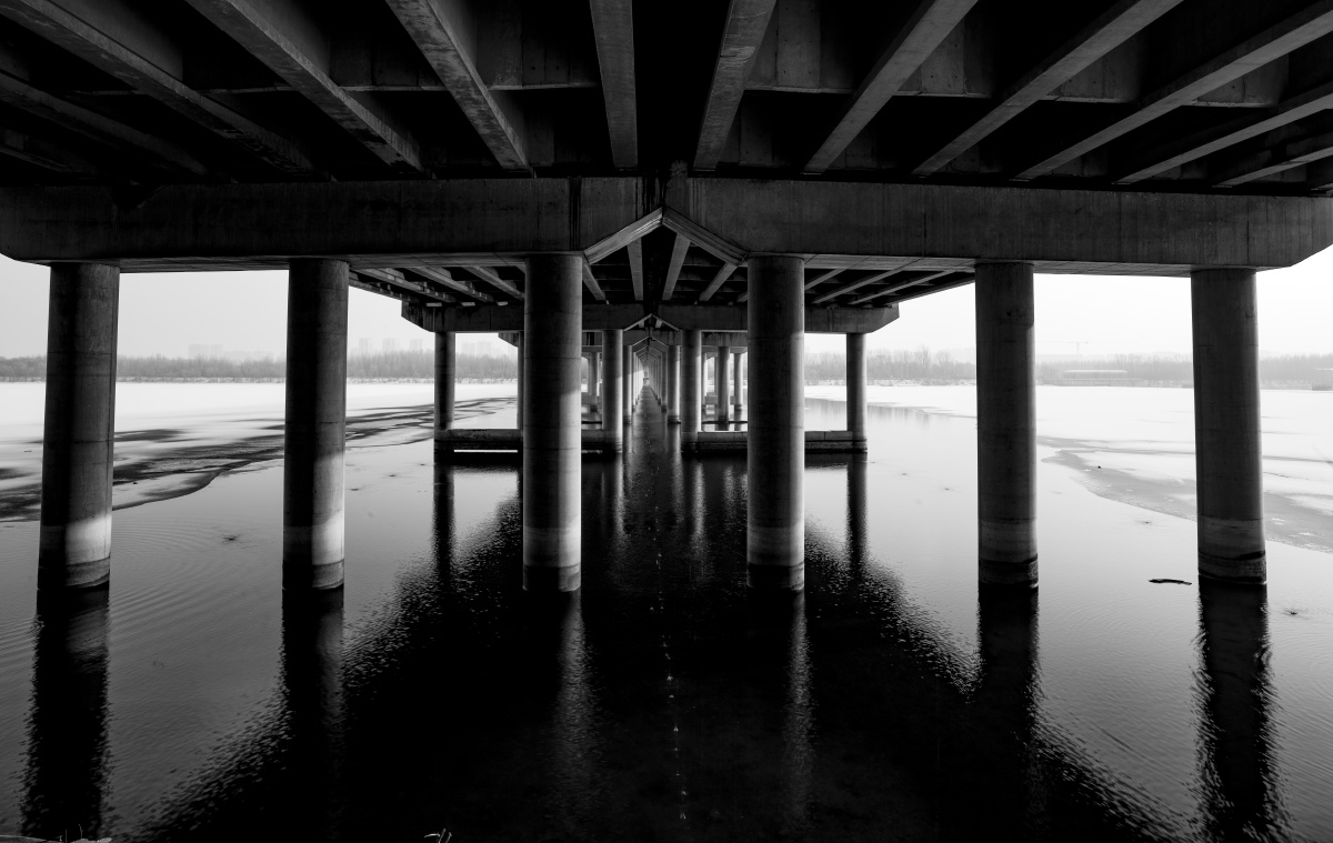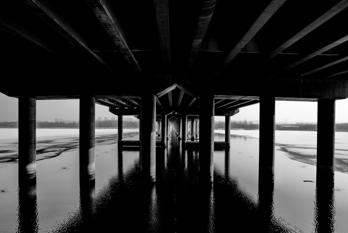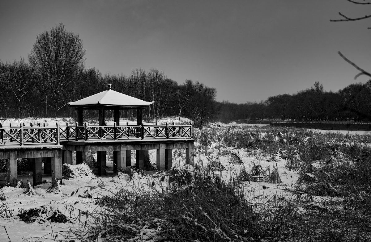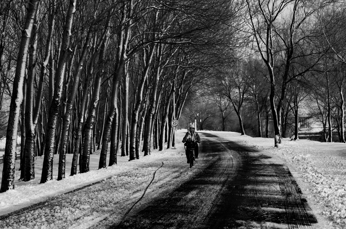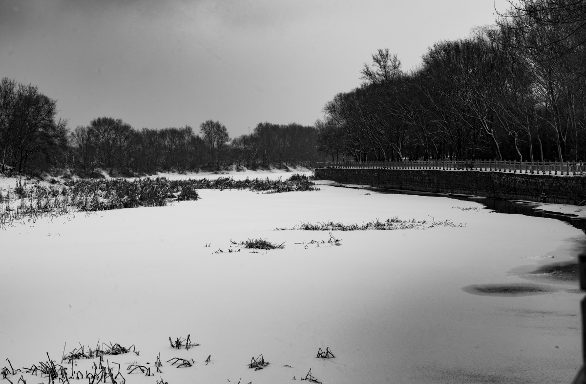浑河雪 黑白 长安桥---哈苏。记录60岁后的骑行与摄影。